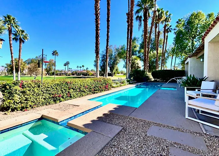 The Westin Mission Hills Resort Pete Dye Course ist in einer Entfernung von rund 10 Autominuten von der Villa The Suite Spot Rancho Mirage, während Cimarron Golf Club befindet sich 7 Kilometer von hier entfernt. Zu den kulturellen Sehenswürdigkeiten in der Nähe gehört Desert Memorial Park, der nur 3 km von ist.